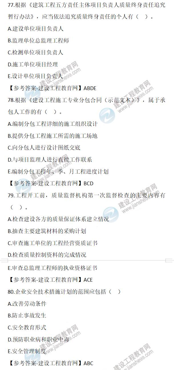2022年二級建造師施工管理試題及答案71-80(11日上午)