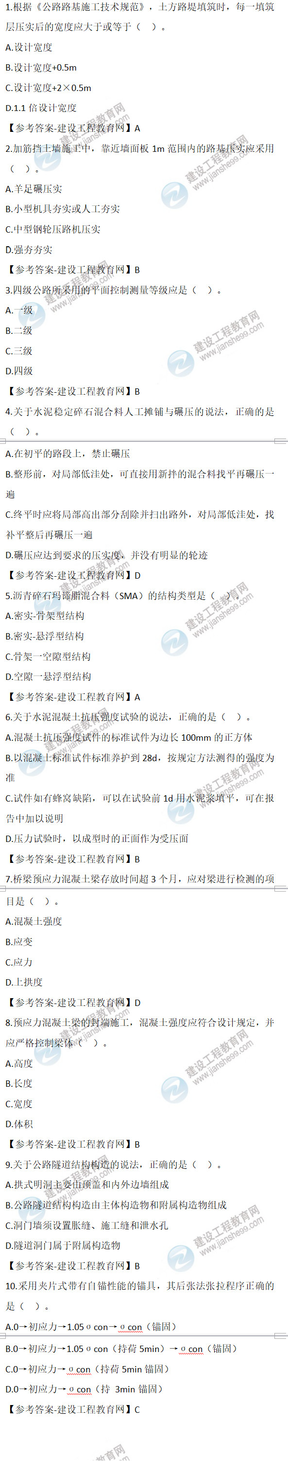 2022年二級建造師考試于6月11日、12日舉行,考試過后,廣大考生最關(guān)心的問題莫過于2022年二級建造師公路工程實務試題及答案第1-10題,建設(shè)工程教育網(wǎng)考后將會根據(jù)學員反饋,及時匯總2022年二級建造師公路工程實務試題及答案分享給大家,并且會及時做出答案解析,希望能為廣大二建考生朋友帶來幫助。