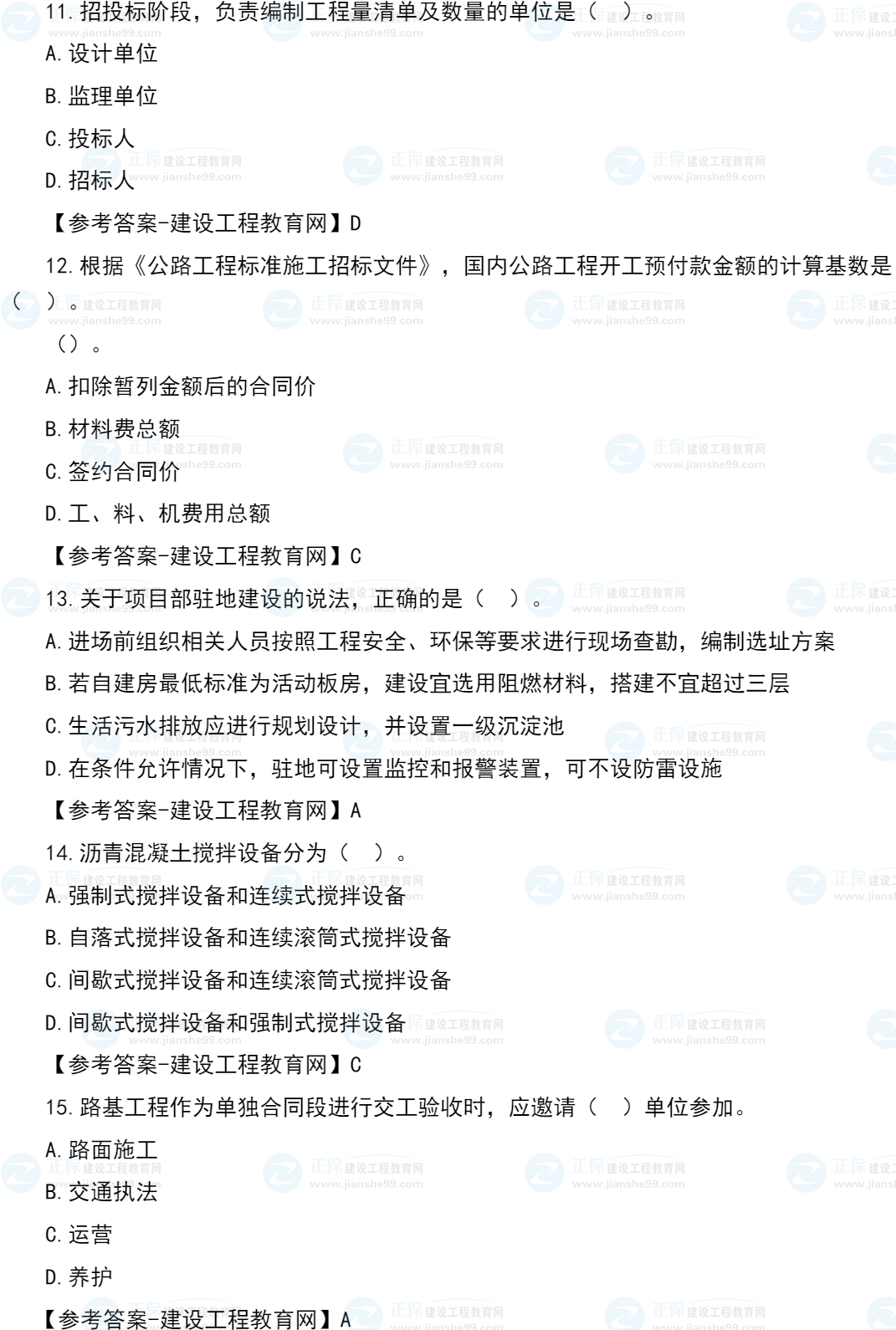 2022年二級建造師考試于6月11日、12日舉行,考試過后,廣大考生最關心的問題莫過于2022年二級建造師公路工程實務試題及答案第11-20題,建設工程教育網(wǎng)考后將會根據(jù)學員反饋,及時匯總2022年二級建造師公路工程實務試題及答案分享給大家,并且會及時做出答案解析,希望能為廣大二建考生朋友帶來幫助。