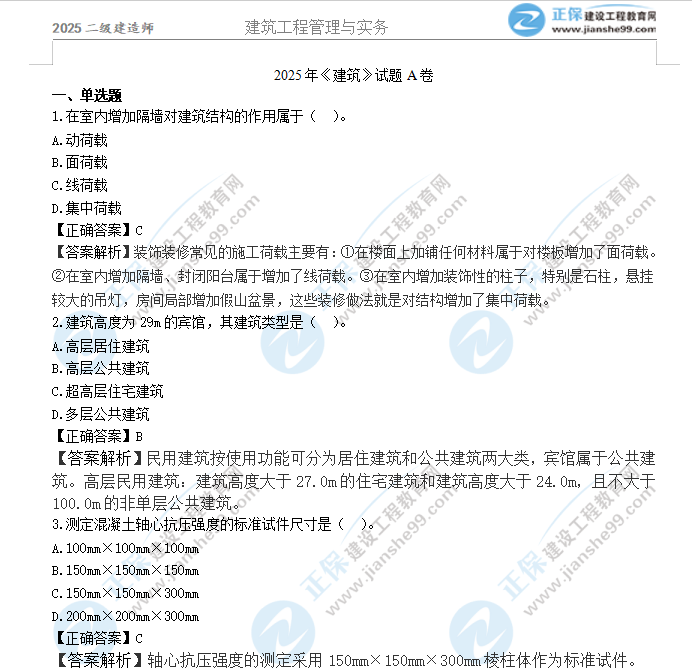 2025年二級建造師建筑實務(wù)真題及答案解析