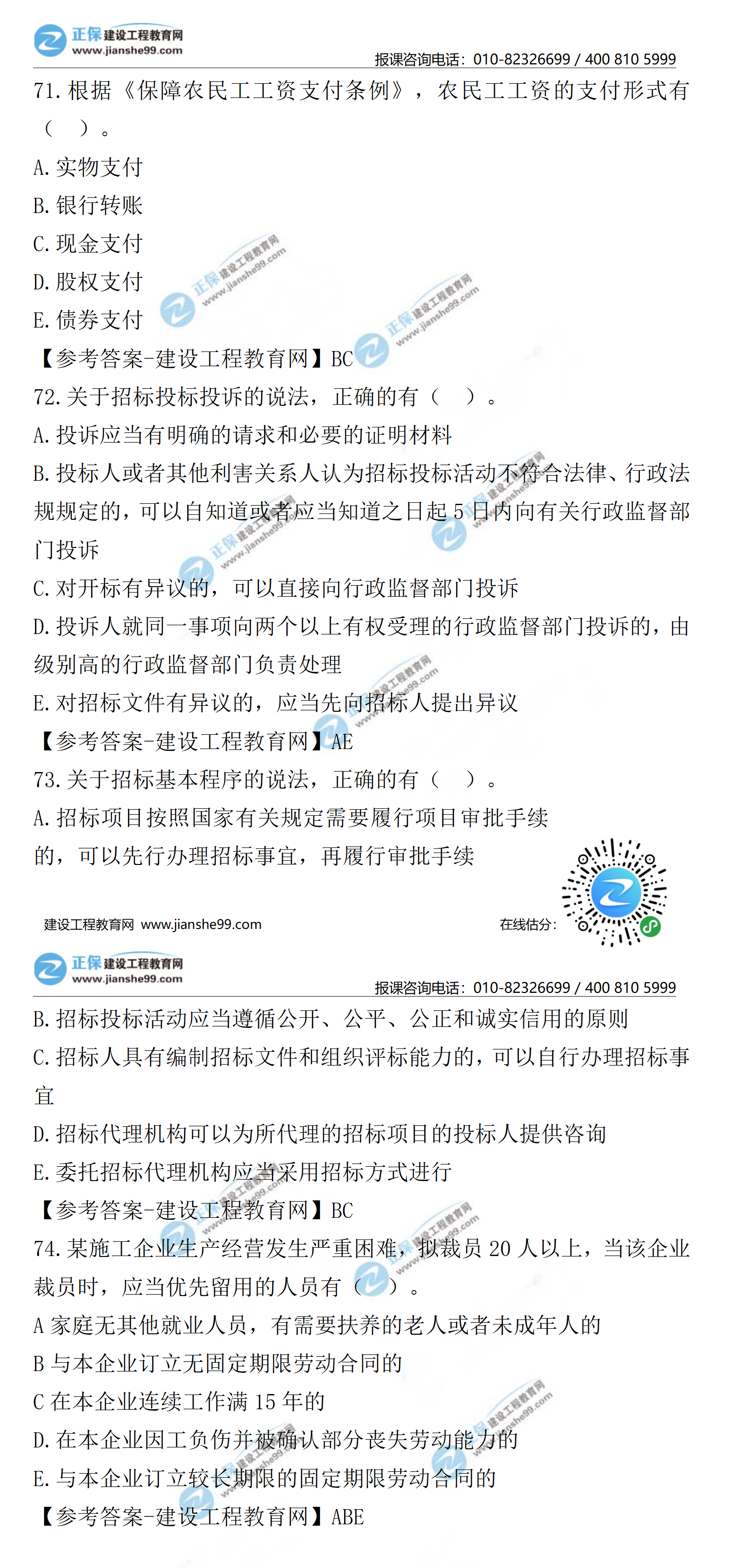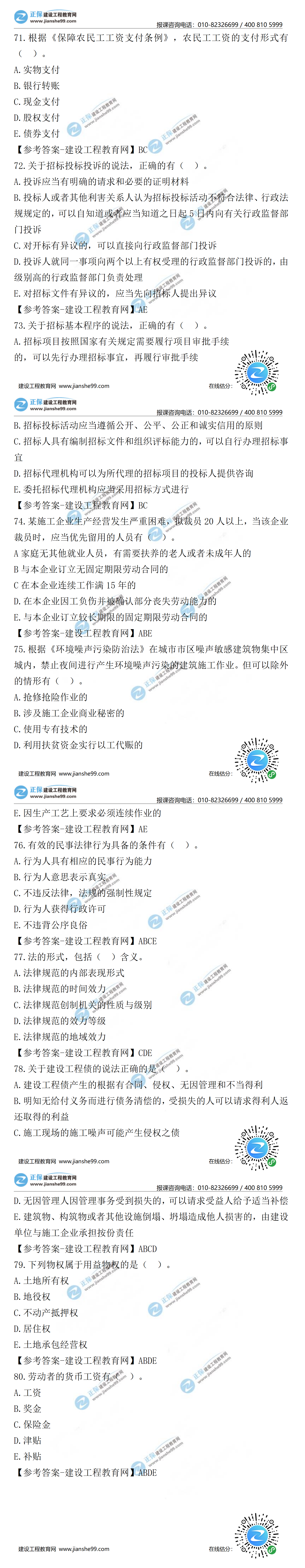 2021年二級(jí)建造師工程法規(guī)試題及答案第71-80題