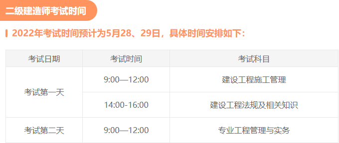問:二級建造師考試時間是如何安排的?