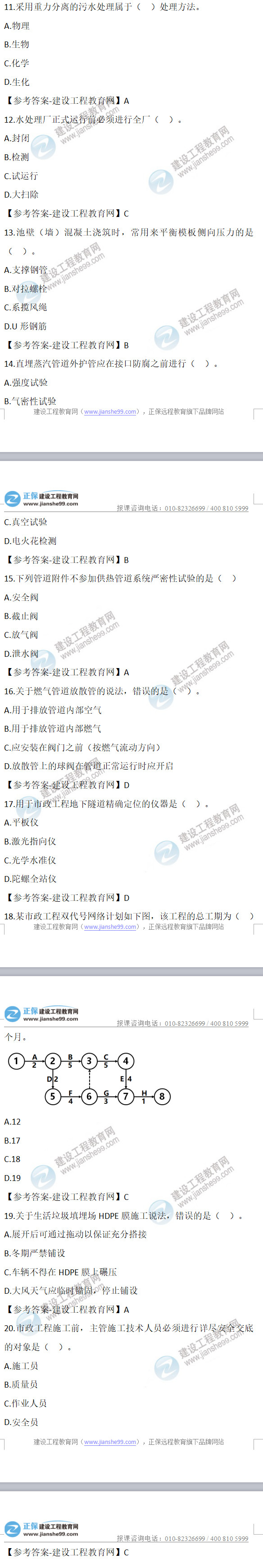 2022年二級(jí)建造師市政實(shí)務(wù)試題及答案第11-20題(12日2天3科)