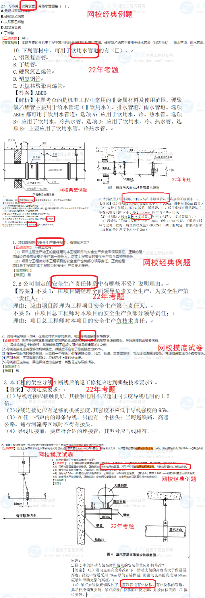 第一套(1天半正常試卷):防火閥及風(fēng)管安裝識(shí)圖挑錯(cuò)題、支吊架安裝識(shí)圖挑錯(cuò)題、架空線路的施工技術(shù)問答題、金屬梯架接地保護(hù)導(dǎo)體連接點(diǎn)的設(shè)置;噴灑頭安裝識(shí)圖挑錯(cuò)題(超綱);
