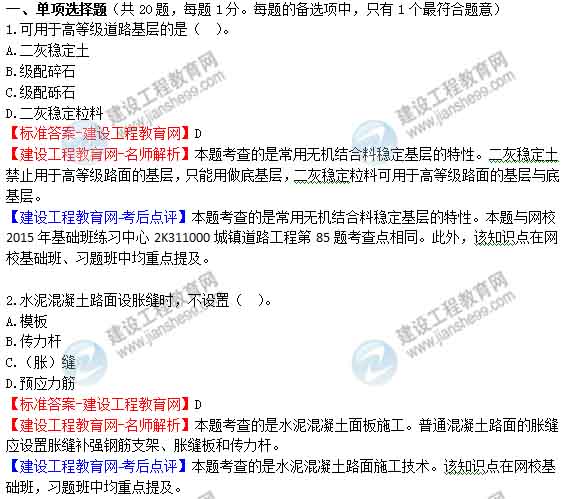 2015年二級建造師《市政公用工程管理與實務(wù)》答案及解析由老師整理而成,部分網(wǎng)站未經(jīng)許可擅自轉(zhuǎn)載、抄襲,造成內(nèi)容有所缺失或錯誤,請大家以建設(shè)工程教育網(wǎng)發(fā)布為準!二建試題答案