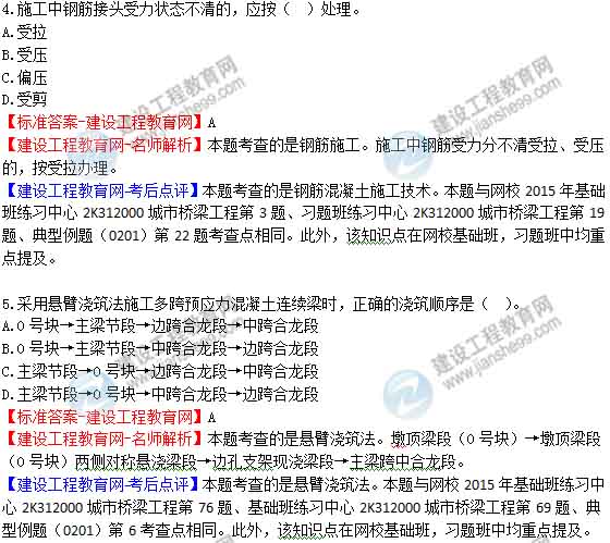 【建設(shè)工程教育網(wǎng)-考后點評】本題考查的是城市橋梁結(jié)構(gòu)組成與類型。本題與網(wǎng)校2015年基礎(chǔ)班練習(xí)中心2K312000城市橋梁工程第5題考查點相同。此外,該知識點在網(wǎng)?;A(chǔ)班,習(xí)題班中均重點提及。