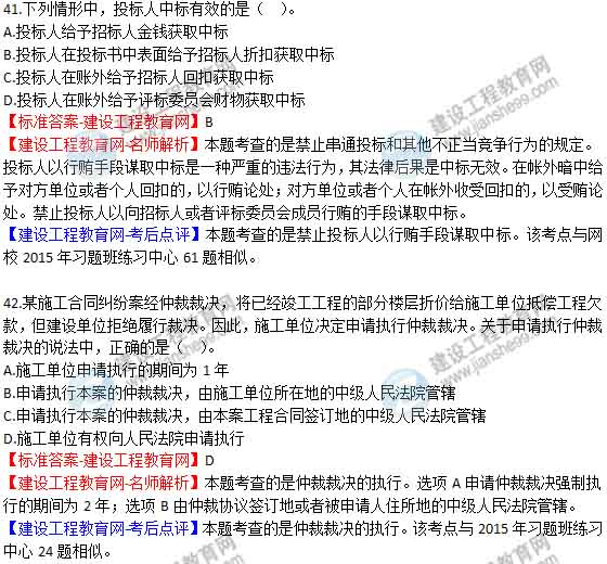 【老師解析】2015年二建法規(guī)及相關(guān)知識試題及答案(37-42題)