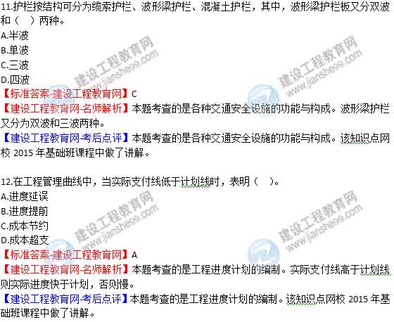 2015年二級(jí)建造師《公路工程管理與實(shí)務(wù)》答案及解析由老師整理而成,部分網(wǎng)站未經(jīng)許可擅自轉(zhuǎn)載、抄襲,造成內(nèi)容有所缺失或錯(cuò)誤,請(qǐng)大家以建設(shè)工程教育網(wǎng)發(fā)布為準(zhǔn)!二建試題答案