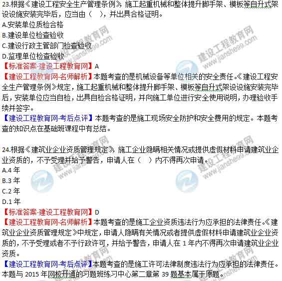 2015年二級建造師《建設(shè)工程法規(guī)及相關(guān)知識》答案及解析由老師整理而成,部分網(wǎng)站未經(jīng)許可擅自轉(zhuǎn)載、抄襲,造成內(nèi)容有所缺失或錯誤,請大家以建設(shè)工程教育網(wǎng)發(fā)布為準(zhǔn)!2015二建答案