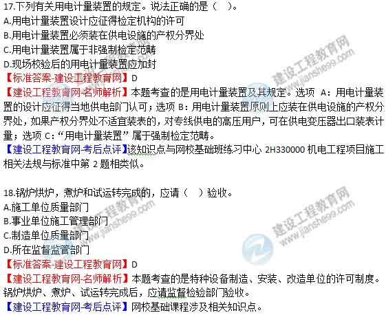 【建設工程教育網-考后點評】該知識點與網校習題班2H331010《計量法》相關規(guī)定中的第9題考點相同;基礎班中也涉及此知識點。