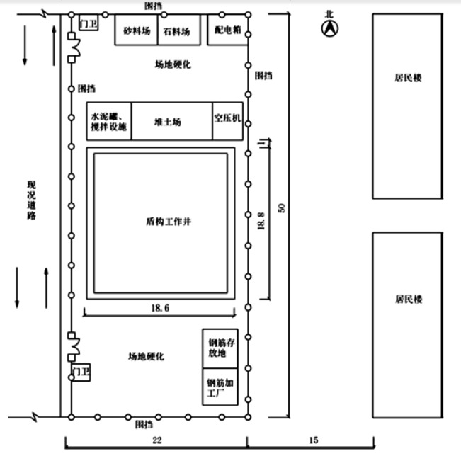 生產(chǎn)設(shè)施(材料倉庫、防護棚、加工棚、操作棚、管片堆放區(qū)、泥漿池)
