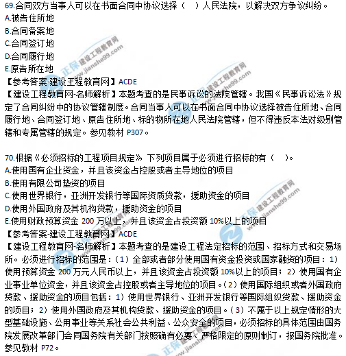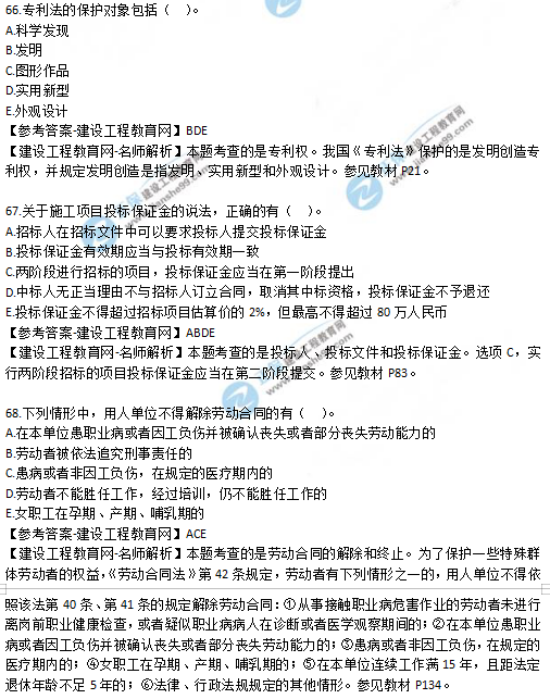 2019年二級(jí)建造師法規(guī)考試真題及答案解析66-70