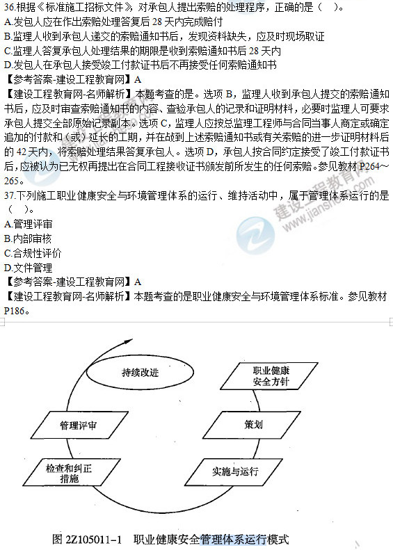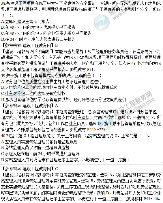 2019年二級(jí)建造師《建設(shè)工程施工管理》試題及答案解析36-40