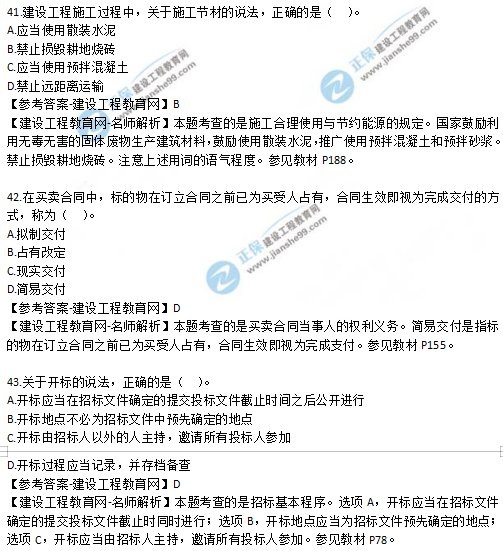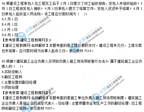 2019年二級建造師法規(guī)考試真題及答案解析41-45