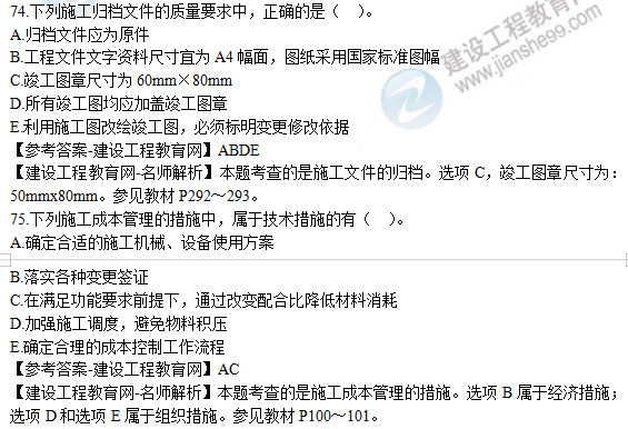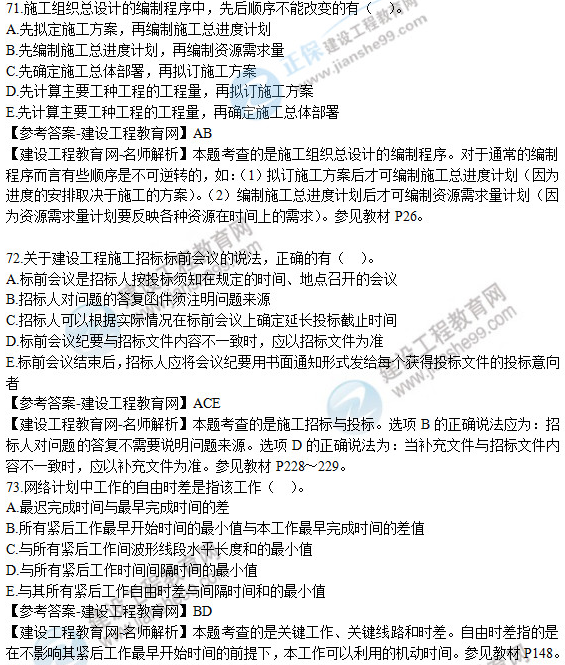 2019年二級(jí)建造師《建設(shè)工程施工管理》試題及答案解析71-75