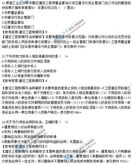 2019年二級建造師法規(guī)考試真題及答案解析11-15