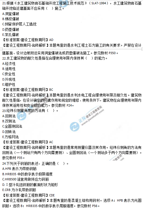 2019年二級(jí)建造師水利實(shí)務(wù)選擇題21-25試題及答案解析