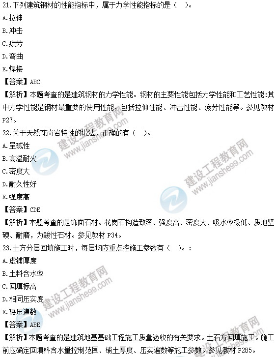 2019年二級(jí)建造師建筑實(shí)務(wù)選擇題21-25試題及答案解析