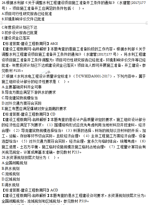 2019年二級(jí)建造師水利實(shí)務(wù)選擇題26-30試題及答案解析