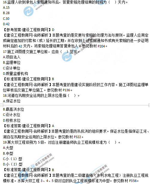 2019年二級建造師水利實(shí)務(wù)選擇題16-20試題及答案解析