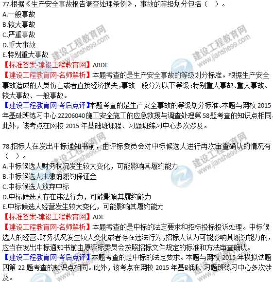 2015年二級建造師《建設(shè)工程法規(guī)及相關(guān)知識》答案及解析由老師整理而成,部分網(wǎng)站未經(jīng)許可擅自轉(zhuǎn)載、抄襲,造成內(nèi)容有所缺失或錯誤,請大家以建設(shè)工程教育網(wǎng)發(fā)布為準!二建試題答案