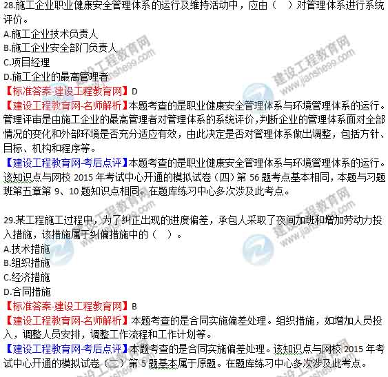 2015年二級建造師《建設工程施工管理》答案及解析由老師整理而成,部分網(wǎng)站未經(jīng)許可擅自轉(zhuǎn)載、抄襲,造成內(nèi)容有所缺失或錯誤,請大家以建設工程教育網(wǎng)發(fā)布為準!