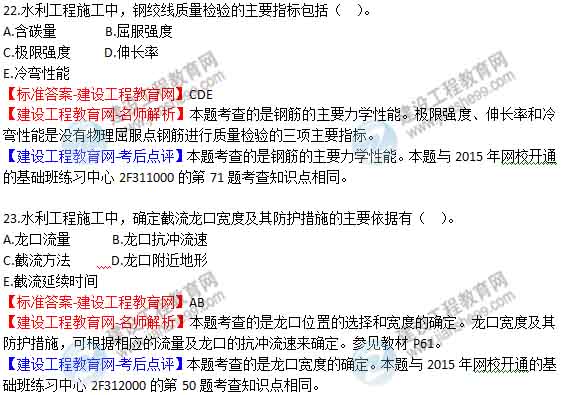 【老師解析】2015年二級建造師水利水電實務試題及答案(19-24題)