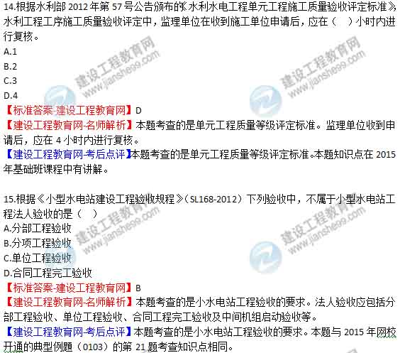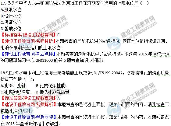 2015年二級建造師《水利水電工程管理與實(shí)務(wù)》答案及解析由老師整理而成,部分網(wǎng)站未經(jīng)許可擅自轉(zhuǎn)載、抄襲,造成內(nèi)容有所缺失或錯(cuò)誤,請大家以建設(shè)工程教育網(wǎng)發(fā)布為準(zhǔn)!
