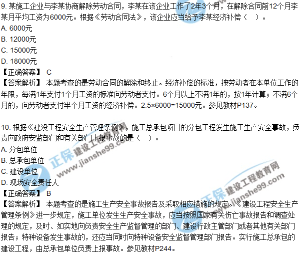 2018年二建《法規(guī)及相關(guān)知識(shí)》試題及答案解析(1-10)
