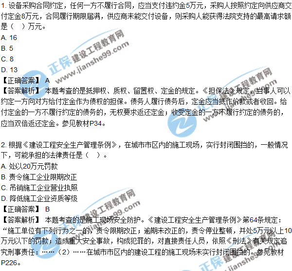 - · 2018年二建《法規(guī)及相關(guān)知識(shí)》試題及答案解析(21-30)