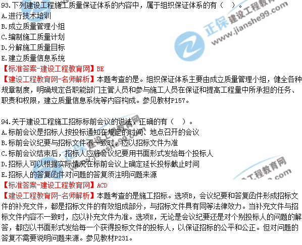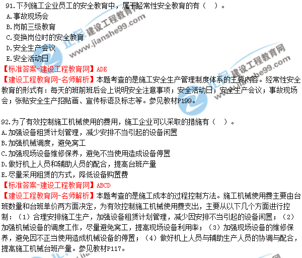 2018年二建《建設(shè)工程施工管理》試題及答案解析(91-95)