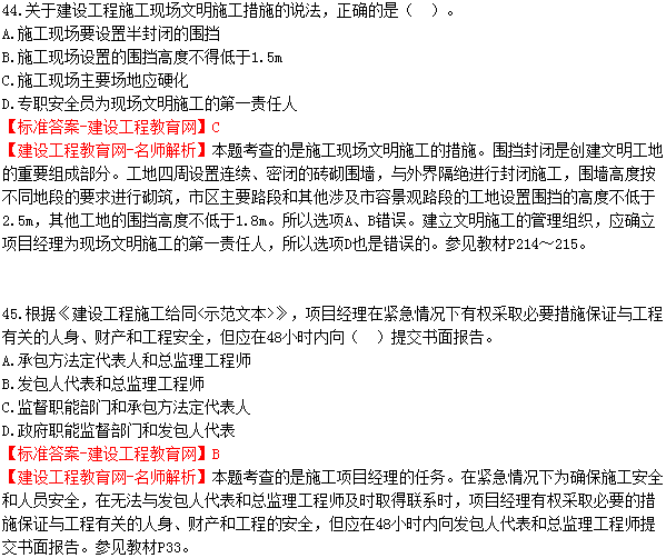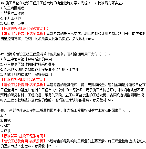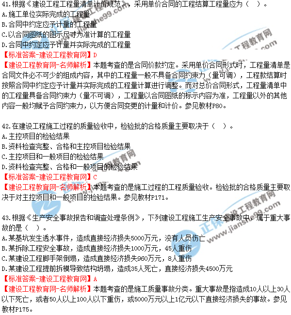 2018年二建《建設工程施工管理》試題及答案解析(41-50)