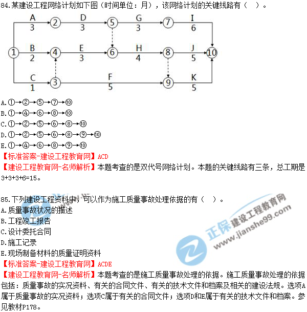 2018年二建《建設(shè)工程施工管理》試題及答案解析(81-90)