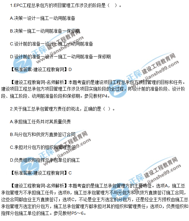 2018年二建《建設(shè)工程施工管理》試題及答案解析(1-10)