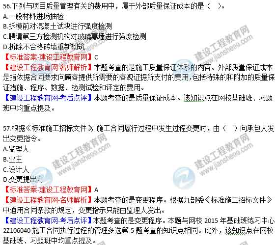 2015年二級(jí)建造師《建設(shè)工程施工管理》答案及解析由老師整理而成,部分網(wǎng)站未經(jīng)許可擅自轉(zhuǎn)載、抄襲,造成內(nèi)容有所缺失或錯(cuò)誤,請(qǐng)大家以建設(shè)工程教育網(wǎng)發(fā)布為準(zhǔn)!二建試題答案