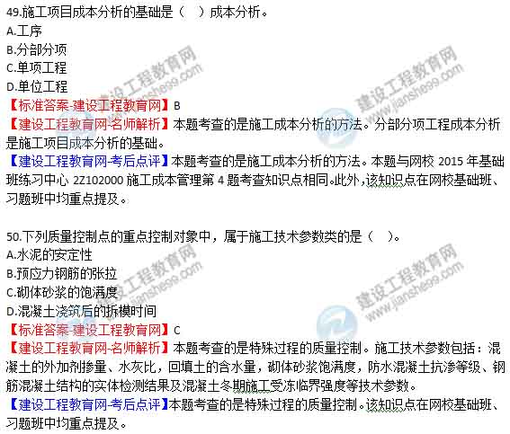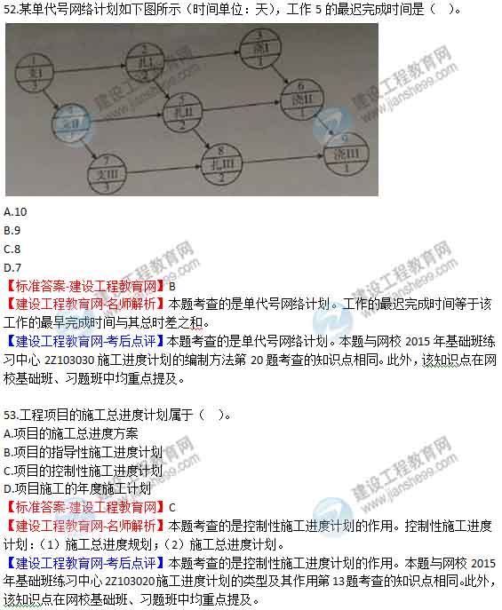 2015年二級(jí)建造師《建設(shè)工程施工管理》答案及解析由老師整理而成,部分網(wǎng)站未經(jīng)許可擅自轉(zhuǎn)載、抄襲,造成內(nèi)容有所缺失或錯(cuò)誤,請(qǐng)大家以建設(shè)工程教育網(wǎng)發(fā)布為準(zhǔn)!二建試題答案