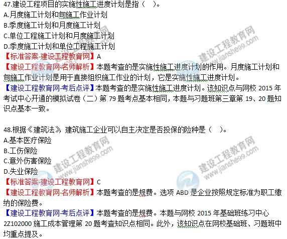 2015年二級(jí)建造師施工管理試題及答案(43-48題)