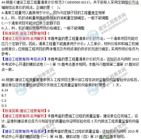2015年二級(jí)建造師《建設(shè)工程施工管理》答案及解析由老師整理而成,部分網(wǎng)站未經(jīng)許可擅自轉(zhuǎn)載、抄襲,造成內(nèi)容有所缺失或錯(cuò)誤,請(qǐng)大家以建設(shè)工程教育網(wǎng)發(fā)布為準(zhǔn)!二建試題答案