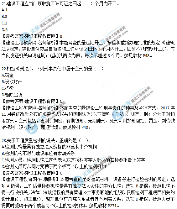 2019年二級建造師《工程法規(guī)》試題及答案解析21-30