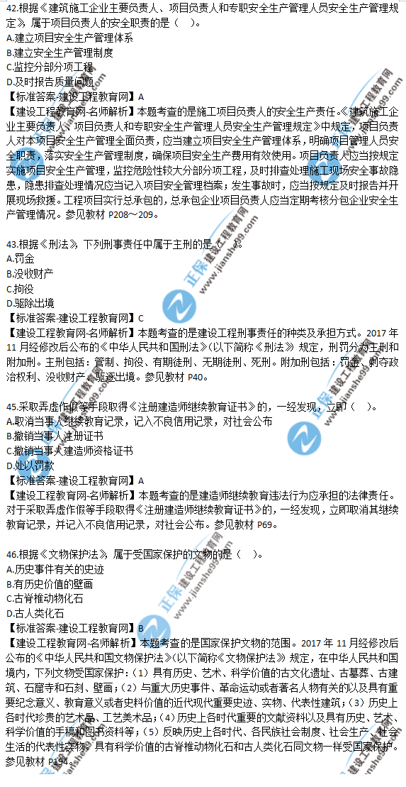 2019年二級建造師《工程法規(guī)》試題及答案解析41-50