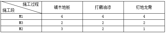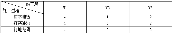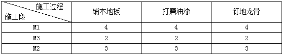 (1)將3室1廳主臥與次臥木地板施工按施工工藝劃分為3個施工過程:釘?shù)佚埞?、鋪木地板、打磨油漆?/p>