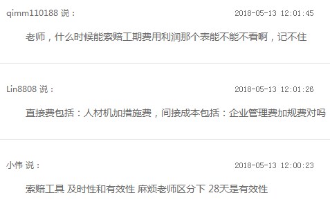 同時和學員在線互動,快速解答學員問題,多數(shù)學員對總價合同、清單計價、網(wǎng)絡計劃和索賠等都題出了疑問,豐老師也逐一認真做了回答 ,你也有如下類似的難題么?
