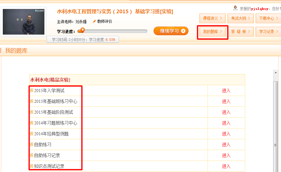 登錄“我的網(wǎng)校我的家”→點擊“題庫”→進入“我的題庫”界面→進行練習