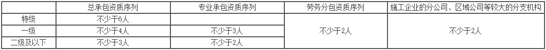 D.二級(jí)和二級(jí)以下資質(zhì)企業(yè)不少于3人