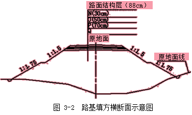 在編制實(shí)施性施工組織設(shè)計(jì)時(shí),施工單位發(fā)現(xiàn)K9+100~K9+600段棄方共計(jì)140000m3,棄方平均運(yùn)距450m,且棄土場占用良田較多;橋頭兩端挖方土體經(jīng)取樣檢測,甲類土CBR值為4.2%,乙類土CBR值為8.1%,土體均勻。經(jīng)業(yè)主、設(shè)計(jì)、監(jiān)理、施工等單位現(xiàn)場考察,綜合各方面因素,業(yè)主單位提出設(shè)計(jì)變更,將橋梁變更為路堤,變更后的路基填方橫斷面示意圖見圖3-2。