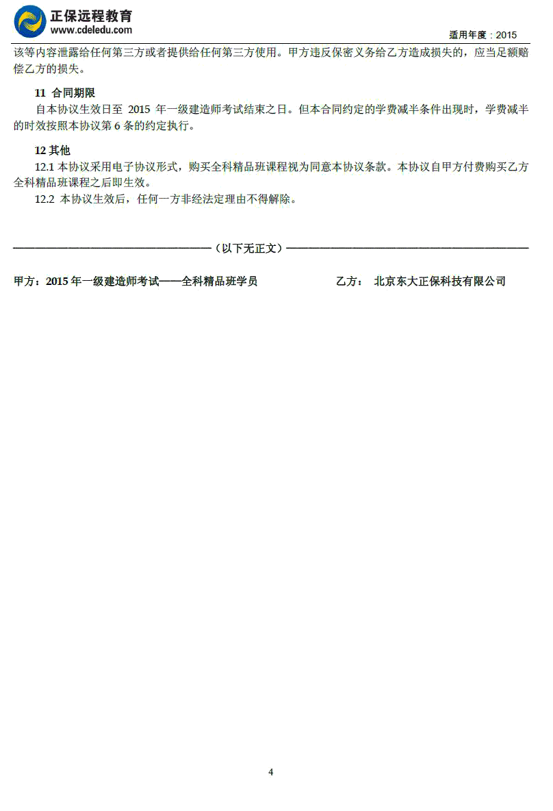 一級(jí)建造師全科“精品班”協(xié)議書(shū)
