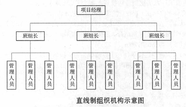 直線制是一種最簡單的組織機構(gòu)形式。在這種組織機構(gòu)中,各種職位均按直線垂直排列,項目經(jīng)理直接進(jìn)行單線垂直領(lǐng)導(dǎo)。