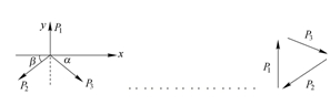 (2)投影法:若匯交于一點的力處于平衡狀態(tài),則有∑X =0, ∑Y =0,以圖1為例,則有: