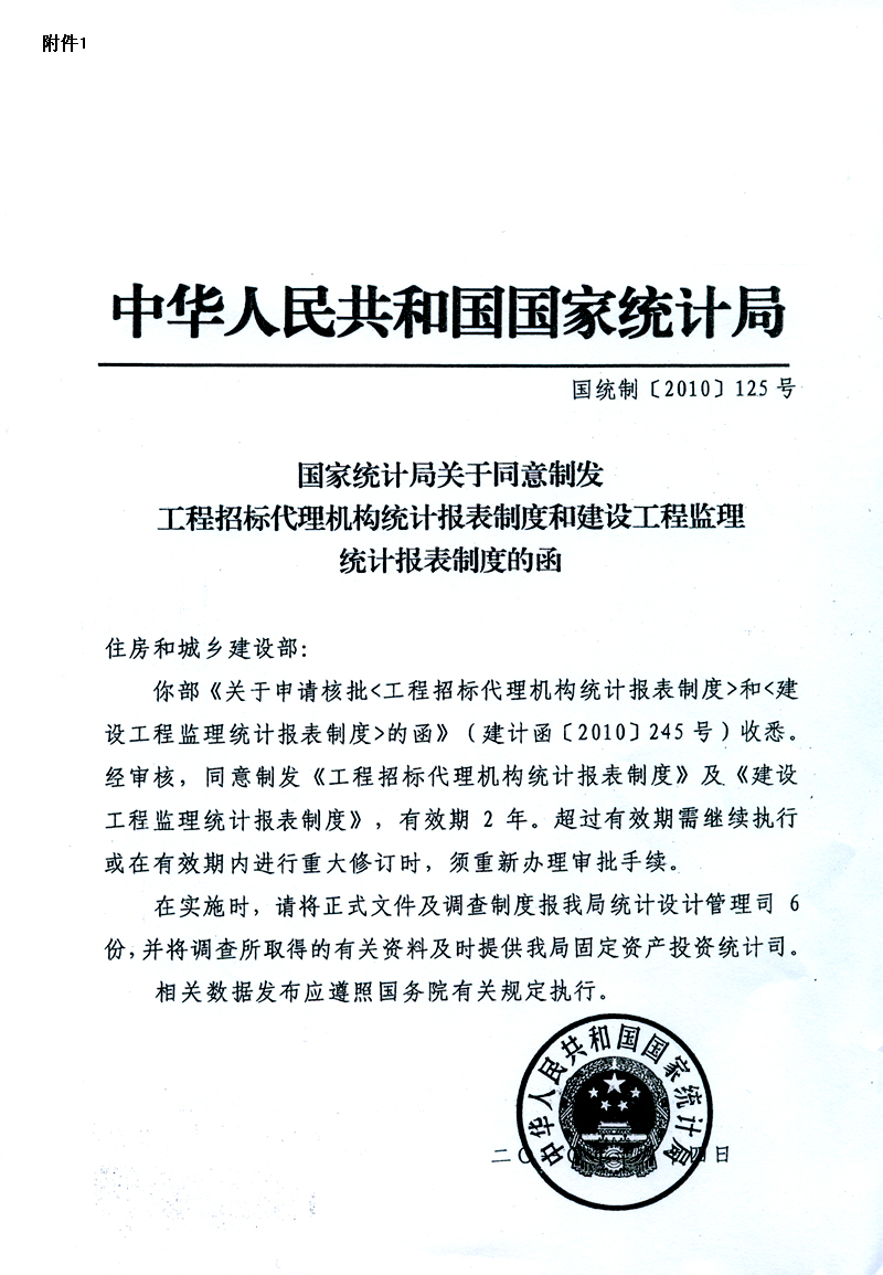 附件:1.國家統(tǒng)計(jì)局關(guān)于同意制發(fā)建設(shè)工程監(jiān)理統(tǒng)計(jì)報(bào)表制度的函(國統(tǒng)制[2010]125號)