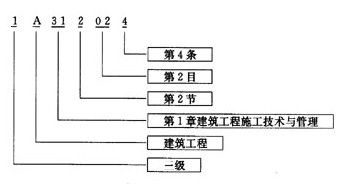 《一級建造師執(zhí)業(yè)資格考試大綱》對專業(yè)、級別以及章、節(jié)、目、條用編碼的形式表示,編碼長度為8位。具體說明如下: